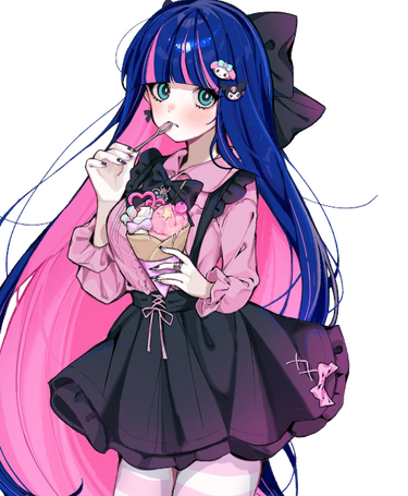 Yumemi loves wearing sweaters, hoodies, and long-sleeved shirts. She is very fond of lolita-esque and gothic/punk fashion. She wears dark colors, other times pastels, but she mostly mix-and-match.Her "default" style is a purple long-sleeved chiffon blouse with rounded lace-edge collars, the shoulder area cut and exposed, and a black ribbon as a centerpiece. She has a high-waisted black skirt that would reach up until a few inches above her knees. She wears black thigh-highs underneath and black dolly shoes. She mostly wears a bow on her hair, which is almost always tied into a half ponytail.Other times, she would be wearing her Kosei High School uniform. The blazer would be left open due to it being too tight around her chest. Under the blazer, she wears a vintage-style white blouse. She wears black pantyhose stockings with her uniform, along with black platformed mary jane shoes.